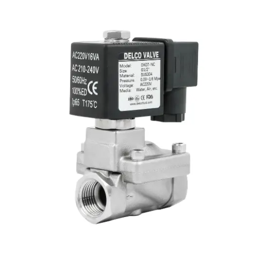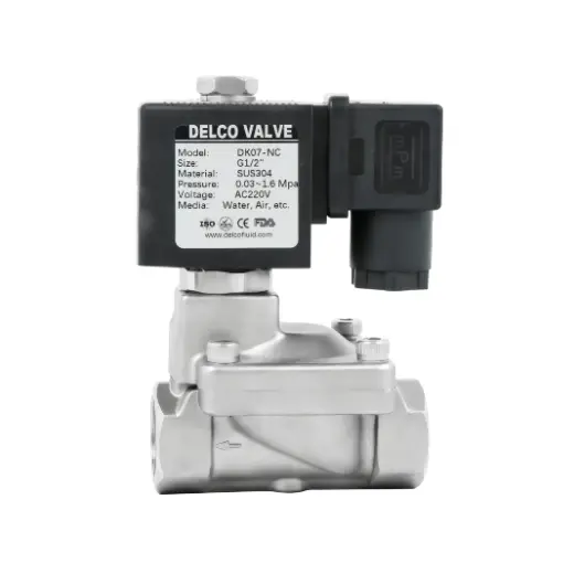 La serie DELCO DK07 es una válvula solenoide de diafragma operada por piloto altamente versátil, diseñada para controlar el aire, gas, Agua, y petróleo. Con capacidad de arranque a presión cero (0.03 Mínimo MPa) y una alta presión máxima de 1.6 Mpa, Es ideal para sistemas de flujo medio a grande. Disponible en carrocería de acero inoxidable o latón con múltiples opciones de sellado (NBR, EPDM, VITON) para cubrir temperaturas hasta 120 °C.