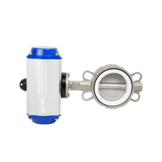 La válvula de mariposa neumática DK67-WB-S de DELCO combina un cuerpo de acero inoxidable y un sello suave, Ofreciendo alta resistencia a la corrosión y un rendimiento de sellado superior. Su diseño tipo oblea es compacto y ligero. Equipado con un actuador neumático, Proporciona un control automatizado fiable para el corte y ajuste del flujo en la industria general, Aptos para alimentos, y aplicaciones exigentes en agua.