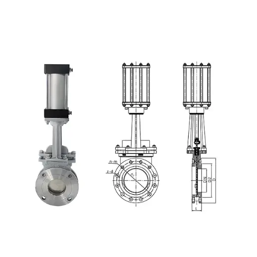 La válvula de compuerta neumática de cuchillo DELCO es una válvula especializada diseñada para manejar medios complejos que contienen partículas, Fibras, o fluidos de alta viscosidad. Su característica principal es una compuerta en forma de pala accionada por un actuador neumático, que puede cortar eficientemente el medio y limpiar la superficie de sellado. Este diseño robusto lo hace indispensable para condiciones industriales severas, ofreciendo un control fiable de encendido/apagado mediante conexiones de abrazadera o brida en sistemas de hasta 1,0 MPa.