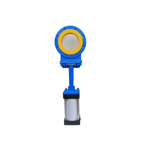 Acción de corte con puerta de cuchillo: La característica definitoria de la válvula es el diseño en forma de pala en la parte inferior de la compuerta. Este mecanismo permite que la válvula se mueva verticalmente y corte eficazmente a través de una suspensión gruesa o material con alto contenido de fibra, prevenir obstrucciones y garantizar un cierre fiable.